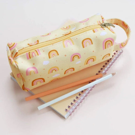 This cool pencil case keeps all your pens and pencils securely in one place. Made from durable material, it is lined in the inside, has a zip top and handy strap for carrying.