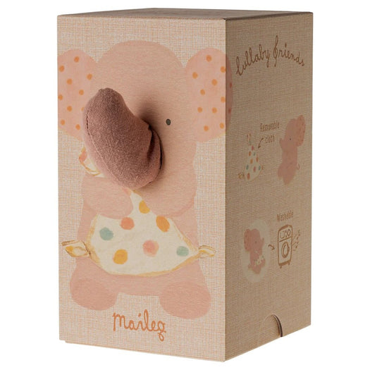 Lullaby friends is a collection of beautiful items for babies. This elephant has a soft cuddle cloth and will play Mozart´s lullaby when you pull the tail. It is made in soft fabrics with unique prints and packed in a beautiful gift box.