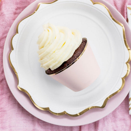 Cupcake wrappers Elegant Bliss, light pink with gold metallic edges