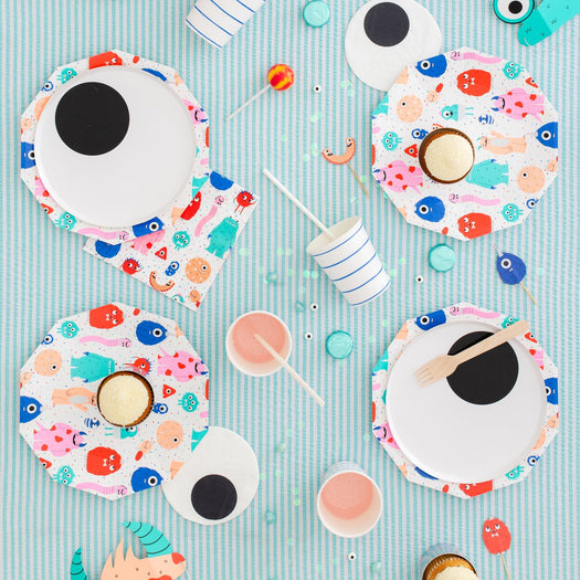 We're not afraid of these monsters! Featuring a die-cut monster eyeball and shimmering holographic silver foil, these monster small plates deliver monstrous amounts of fun!