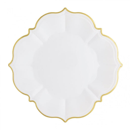These stylish white lunch paper plates are perfect for every occasion and celebration. Elevate your party with these modern porcelain-like white plates. With the look of fine porcelain, the elegant design and gold foil scalloped edge will leave your guests surprised that these are paper plates. Use them for a variety of occasions, including luncheons, birthdays, weddings, bridal and baby showers.