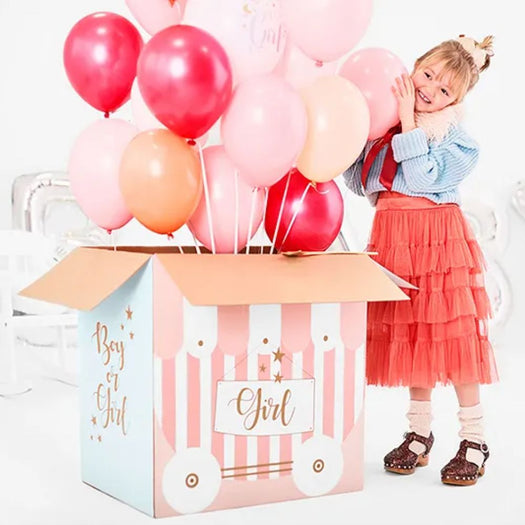 Is it a boy or is it a girl? Create a fun gender reveal surprise with this boy or girls balloon box! Fill the box with balloons in the desired colors, close it up and get ready for a fun and memorable gender reveal.