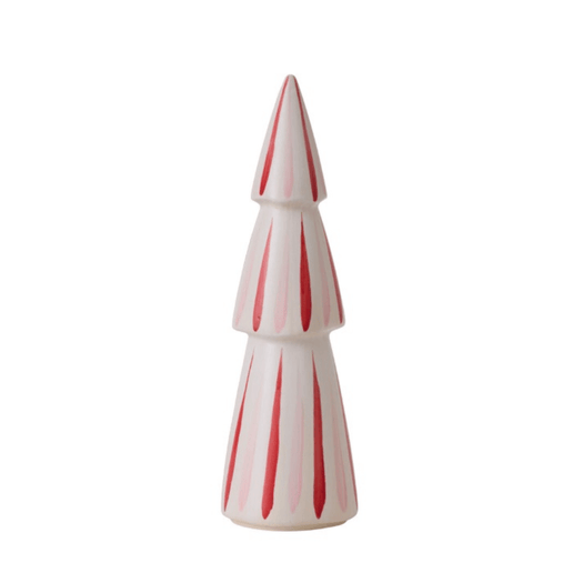 Create a warm, wintry scene with the Everwish Tree, a ceramic tree featuring a natural white clay base and vertical hand painted stripes in red and pink. The playful color & clean lines bring height to holiday presentations and make them easy to layer into any tablescape, mantle, or styled shelves, adding a touch of winter joy to your decor. Style both heights together for a fresh & modern holiday look.