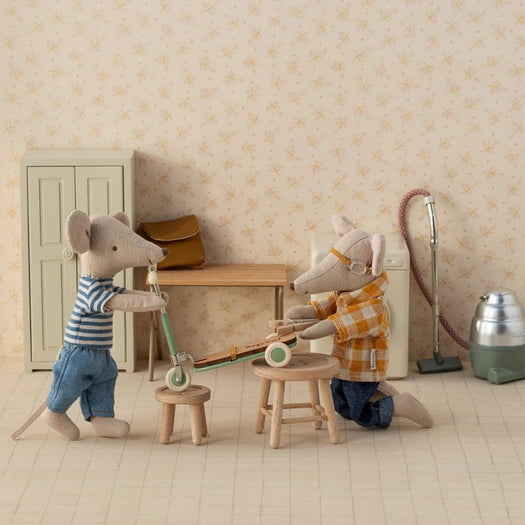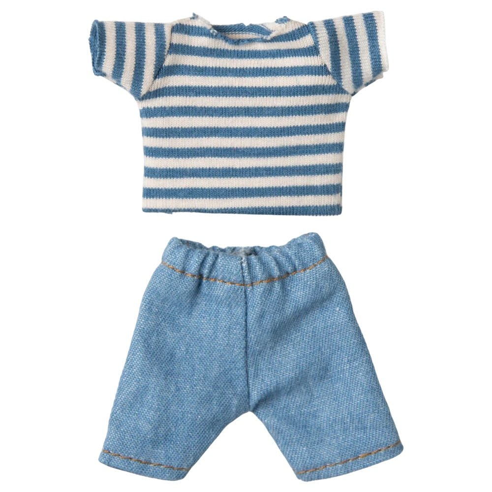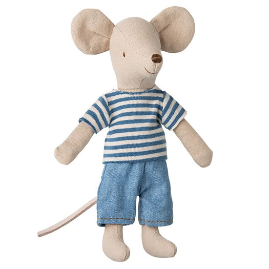 This mouse is called LouiMax and he is a really adventurous guy. He wears a blue striped shirt and a pair of denim pants. The mouse has magnets in his hands and is sold in a decoration box. The mouse is size big brother.