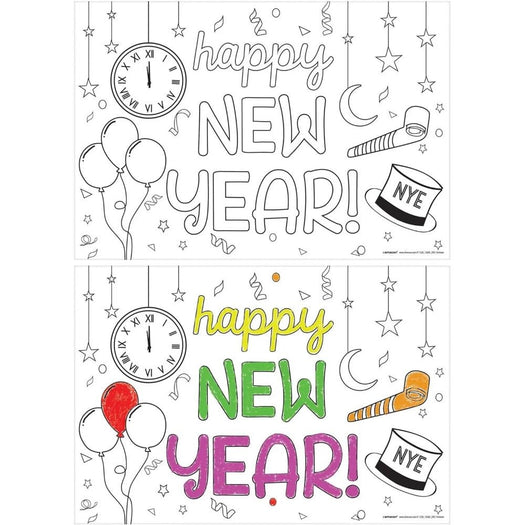Celebrate New Year's Eve with creativity and fun using these "Happy New Year" Coloring Paper Placemats. Perfect for keeping little ones entertained, these placemats feature festive designs including clocks, balloons, and a cheerful New Year message.