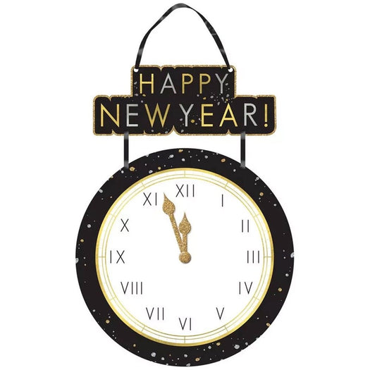 Count down to the new year with Countdown to Midnight with this stylish wall decor! Features a clock about to strike twelve with a "Happy New Year!" message. No stated year this sign can be reused year after year!