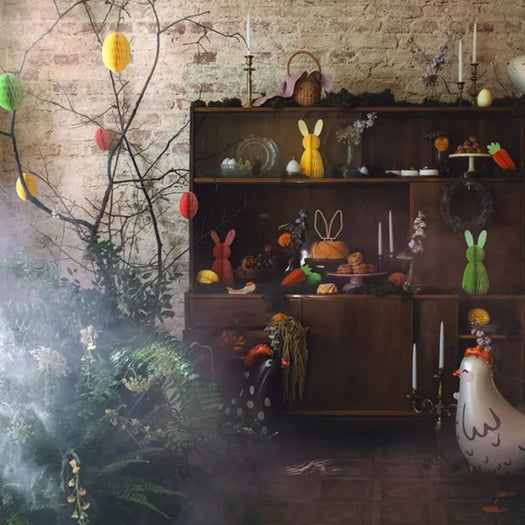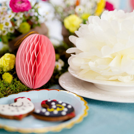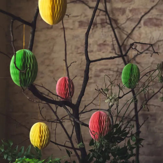 Add some color to your Easter table and decorations with these honeycomb egg decorations! The eggs are crafted from honeycomb tissue paper and come with an attached hanging string. Hang them from the ceiling or open half-way to attach to the wall for a fun photo backdrop. The eggs can also be propped up in a bowl and used as a centerpiece.