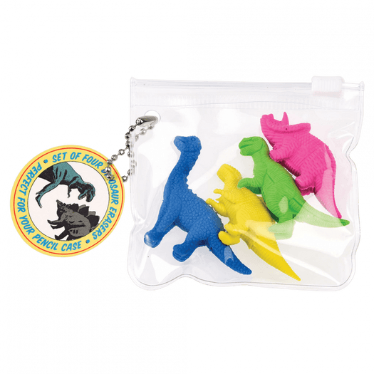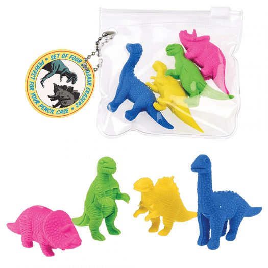 Add a team of dinosaurs to your pencil case with this set of Prehistoric Land erasers. These novelty erasers come in a handy zip bag, making them an ideal filler for a party bag or stocking.