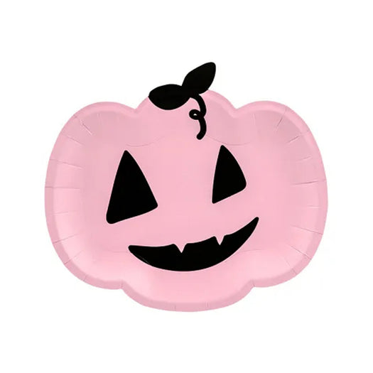 Paper plates Pumpkin in pink colour with black print, size approx. 25 x 22 cm. (1 pkt / 6 pc.)