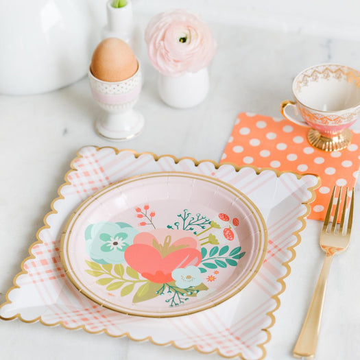 Pick up these scalloped plaid paper plates for elegant party style and easy clean up. From princess tea parties, bridal shower brunches, garden parties, and elegant baby showers, these plates will simplify setting the table for your event and tie it all together. The stylish scalloped edge adds the perfect touch to an upscale event, or just the right amount of pretty to a backyard cookout.