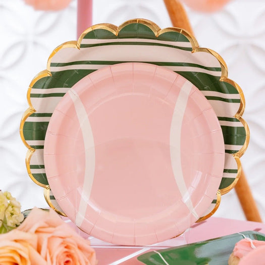 Serve up some style with this Tennis Ball Plate. This unique pink plate is shaped like a tennis ball, making it perfect for any tennis fan or sporting event. Its playful design adds a touch of fun to any meal. Game, set, match - this plate is a winner!