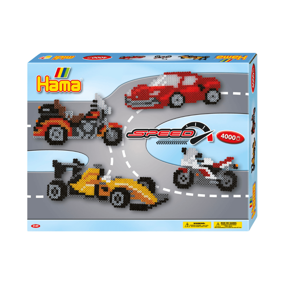 Approx. 4.000 beads, 2 large square pegboards No. 234. Colour printed design sheet, instructions and ironing paper.