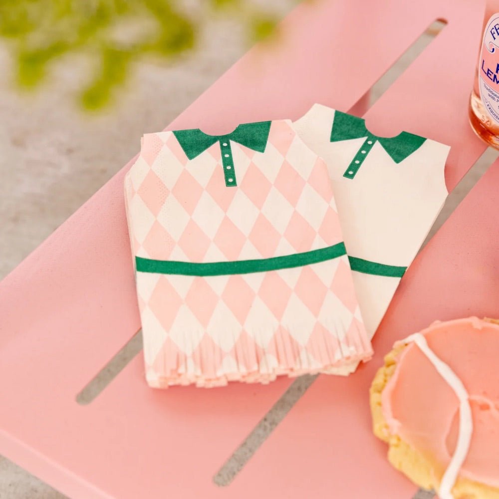 Ace your next dinner party with our Tennis Dress Fringed Napkin Set! These napkins are designed to look like miniature tennis dresses, adding a touch of playfulness to your table setting. Serve up some fun with this unique and festive set.