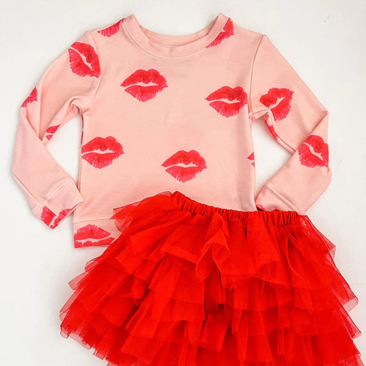 Pucker up...these lip sweatshirts are the newest Valentines addition. This super soft sweatshirt with watercolor lips and a peachy/pink background makes for a perfect valentines outfit.