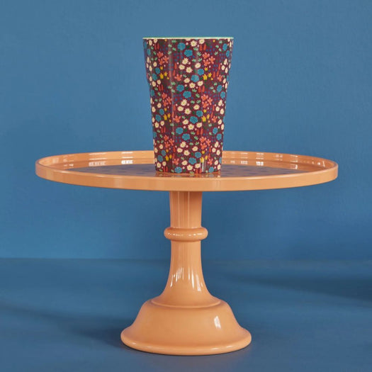 Melamine cake stand in apricot with lavender dots. This cake stand makes sure your cake gets the right serving, no matter if it is store bought or homemade with love.