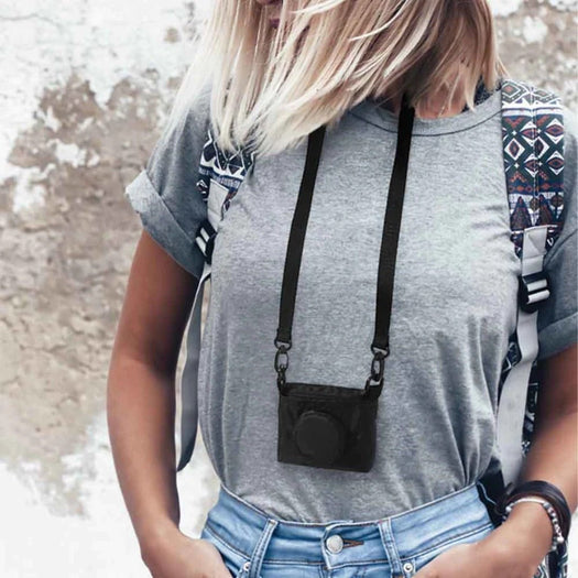 Shopping bags are really boring... This one isn't. It hangs around your neck like a retro camera so it's with you when you need it.