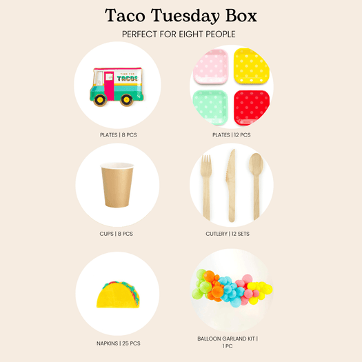This box is perfect for 8 guests but don't worry if you're having more people at your party! Simply check out our Taco Tuesday Collection and add anything extra you might need!