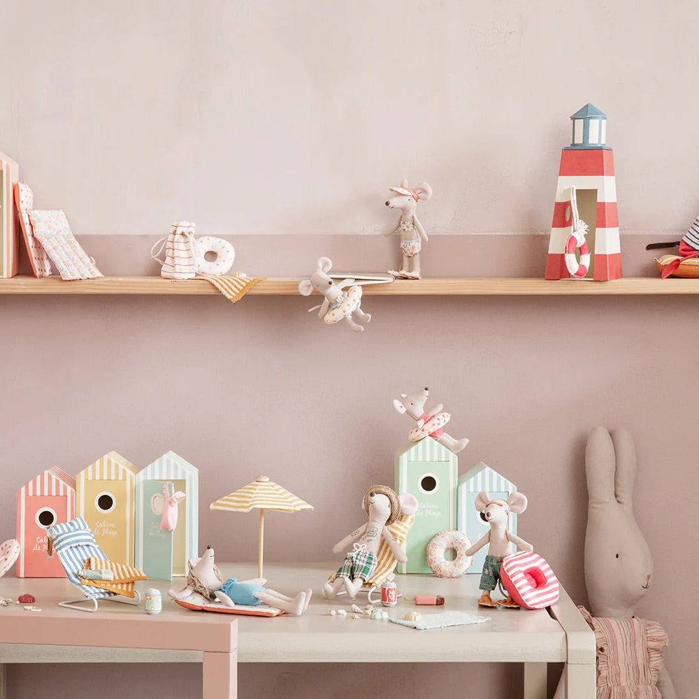 Fun mini float in red polka dot design for Brother and Sister Mouse. Designed in an authentic looking coated fabric (not waterproof) with pretty red polka dot design for lazy days at the beach.  Other Beach accessories also available separately see images.