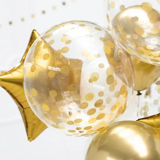 Add some sparkle with this stunning orbz gold confetti balloon. This balloon will add a sprinkle of sparkle to your next party! Wow your friends and family with the trendy balloons, perfect for any special occasion.