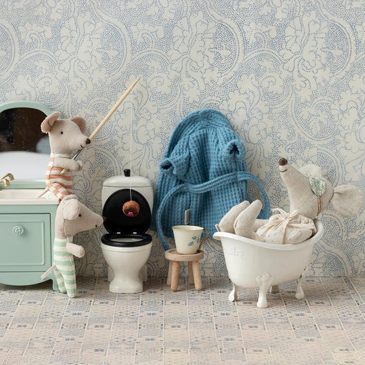 This soft bathrobe is essential after a warm bath and to bring to the beach. It fits mice size, mum and dad.