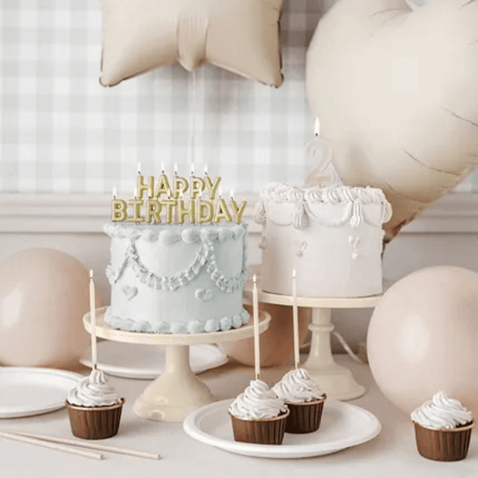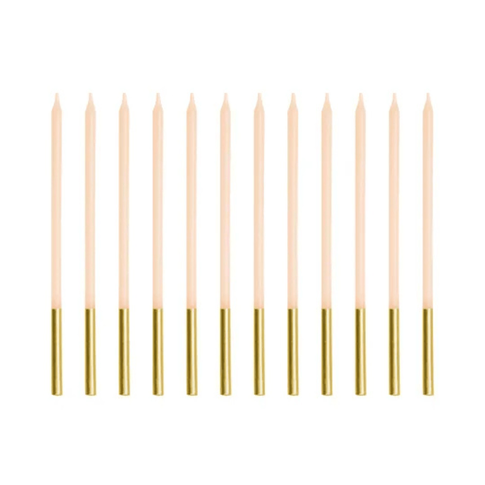 Elevate your cake with these elegant beige candles. These timeless candles complement any cake with sophisticated glow.