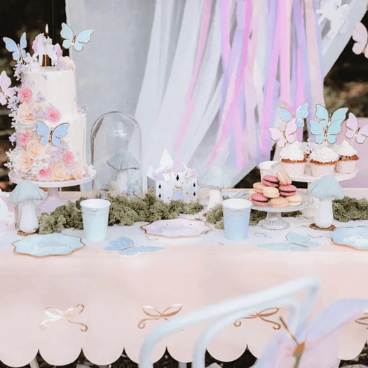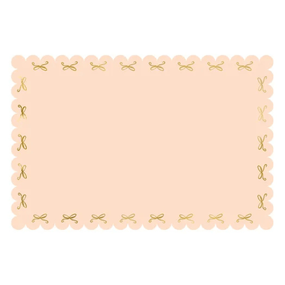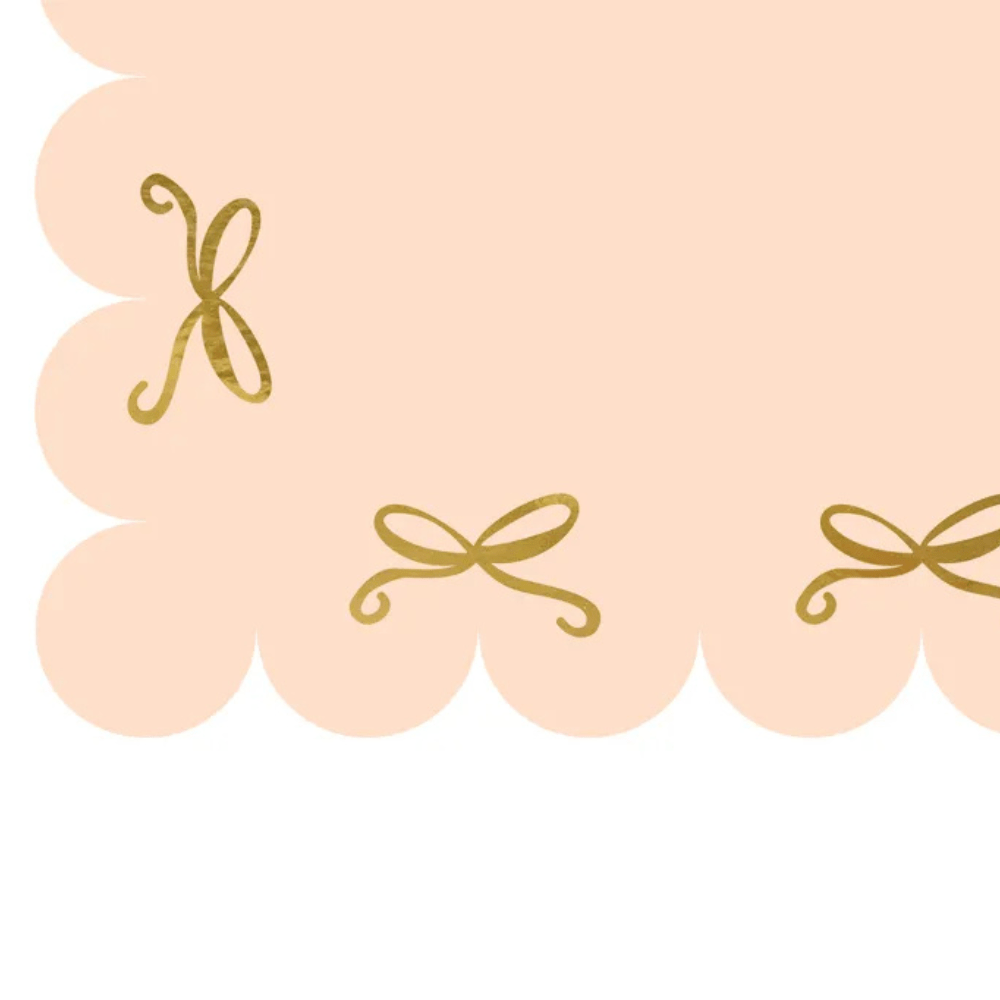 Bring elegance to the table with this pastel pink tablecloth featuring a pretty gold foiled bow pattern