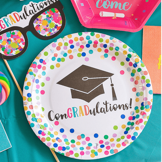 Large enough to hold a lot of food and cute enough to make the graduate smile, these dinner plates will be a hit at a graduation party.