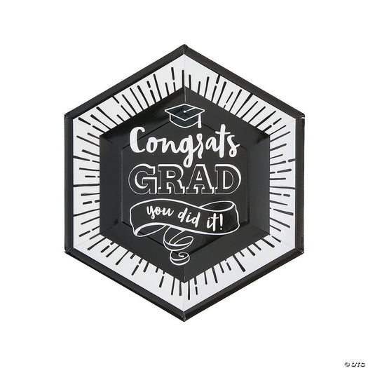 Set the table and celebrate years of hard work with these Graduation plates! Each plate is printed with “Congrats Grad”, “You did it!” and a mortarboard grad cap.