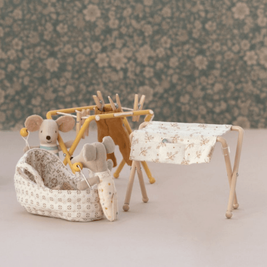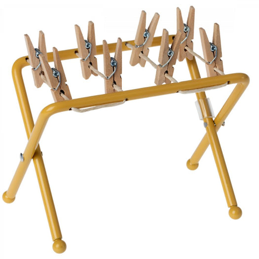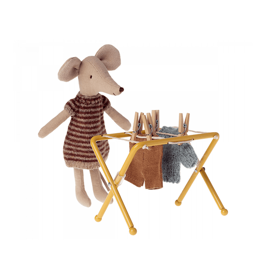 All families have a lot of laundry. This drying rack is made for the mouse family and fits their small-sized clothes. This set includes a drying rack and small wooden pegs.