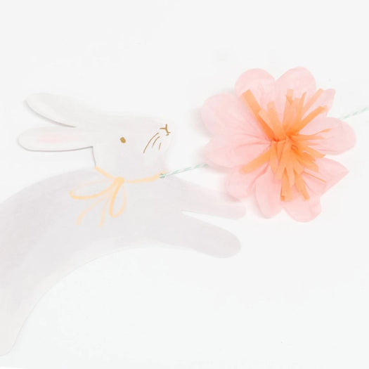 These gorgeous garlands are perfect to add a touch of springtime beauty to your Easter gathering or any special party. They feature leaping bunnies, flowers and leaves.