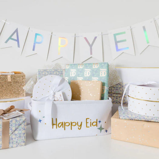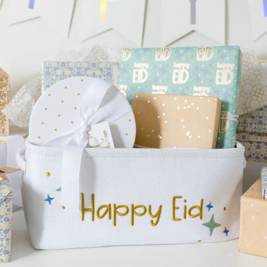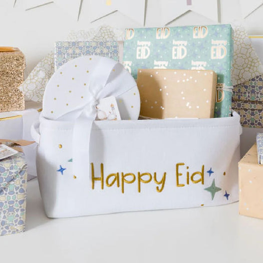 Kids can't wait till Eid arrives, so put a smile on their face with this "Happy Eid" basket! Fill it with goodies or wrapped gifts then use it for storage all year!
