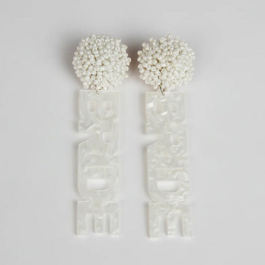 These hand-beaded drop earrings are a vision in white, with a pearlescent shimmer to add that extra touch of bridal glam for the future BRIDE who wants to make a statement!