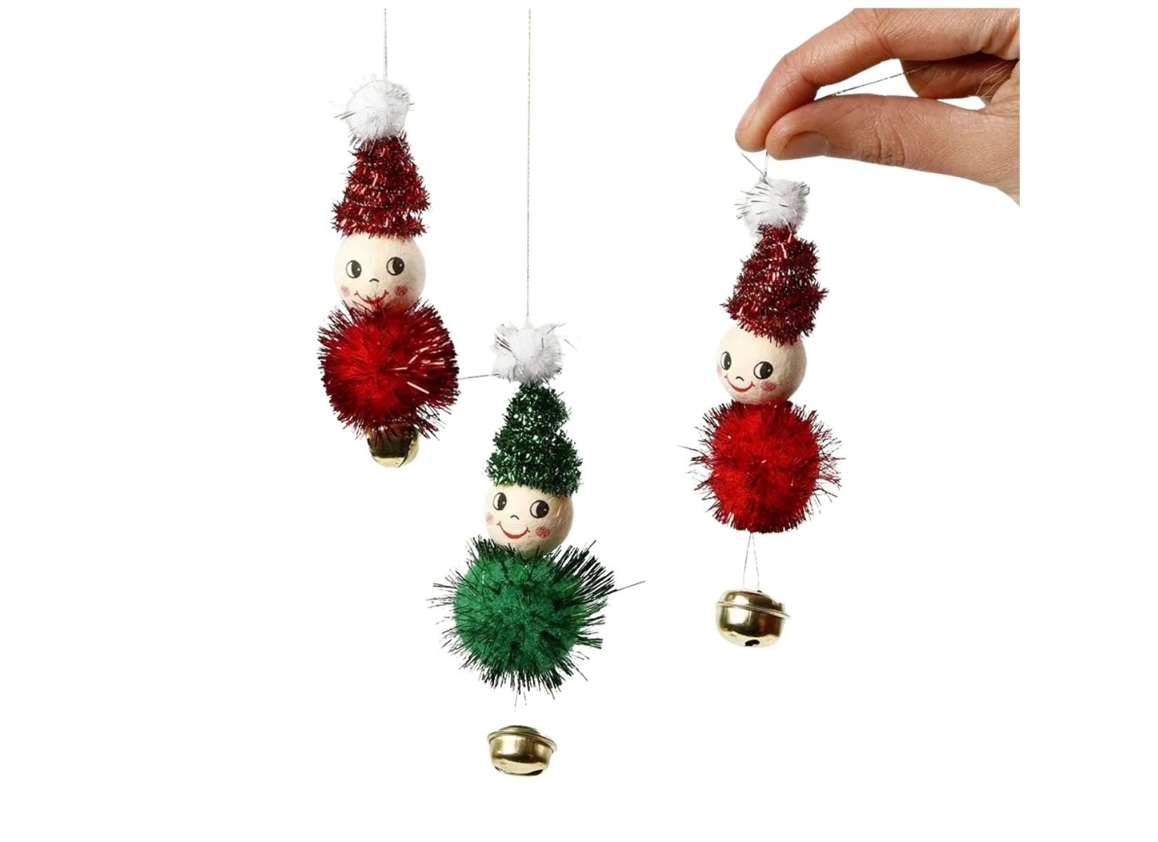 Contents: Metal chenille, metal pom poms, cotton wool heads, bells, needle and string for hanging