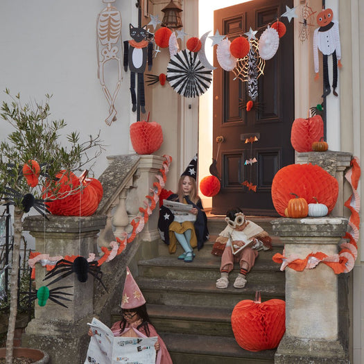 Spiders make terrific Halloween decorations as they are so creepy, especially when you bump into them. Eek! These 3D hanging spiders, crafted from different coloured tissue paper honeycomb, come in three sizes and create a wonderful effect.
