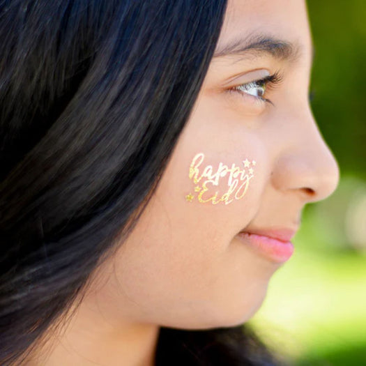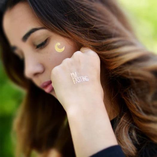 Easily applied with water, these will have the kids and grown-ups ready for Ramadan and Eid in fashion. You receive 6 individual tattoos per pack with 2 of each design. Three designs include "Happy Eid", Crescent & Star, and "I'm fasting”. Apply them anywhere to the skin, we recommend wearing the 'I'm Fasting' on your cheek to avoid being invited to office lunches all month long.
