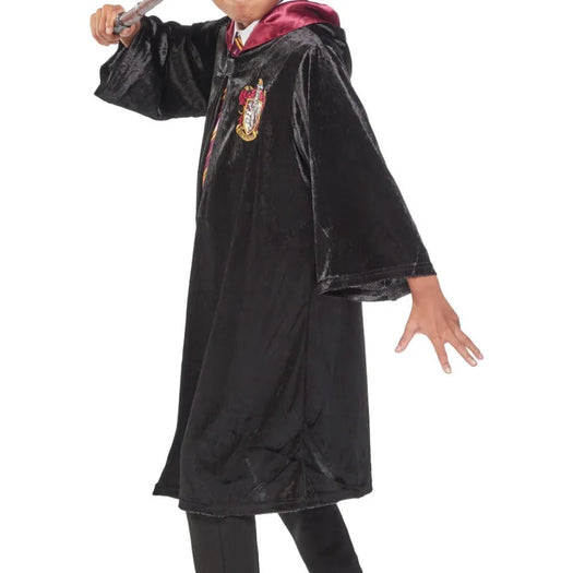 Harry potter fancy dress costume deluxe fancy dress robe for kids (boys and girls). Includes deluxe quality harry potter robe with logo and red satin lined hood. Made of velvet-like material. Suitable for Harry Potter or Hermione Grainger. Product Features: