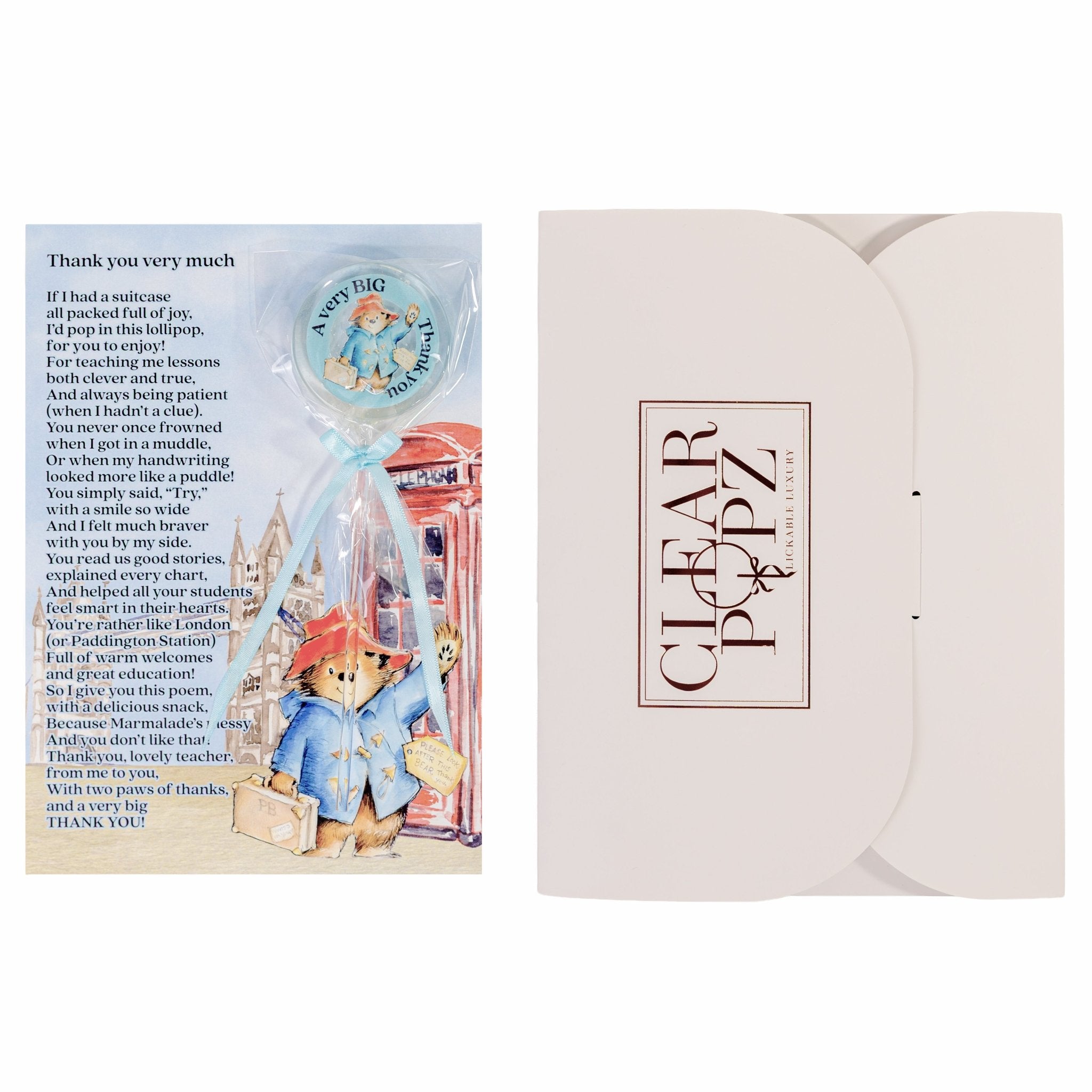 A thoughtful way to say thank you with carefully crafted Lickable Luxury from Clear Popz. The beautiful handmade lollipop comes on a matching backing card with a sweet message, all wrapped up inside a signature Luxe Envelope ready to be gifted.