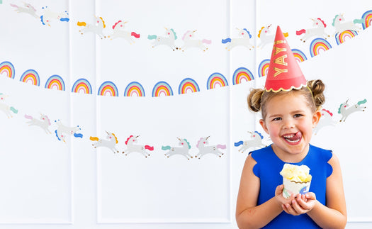 Today is your lucky day! This rainbow banner will make your party a magical affair. Bright colors accented with gold foil make this rainbow banner brighten any space, even on the rainiest of days! Make it a fairytale day by combining this garland with our unicorn banner. With this magical combination your birthday wishes are sure to come true!