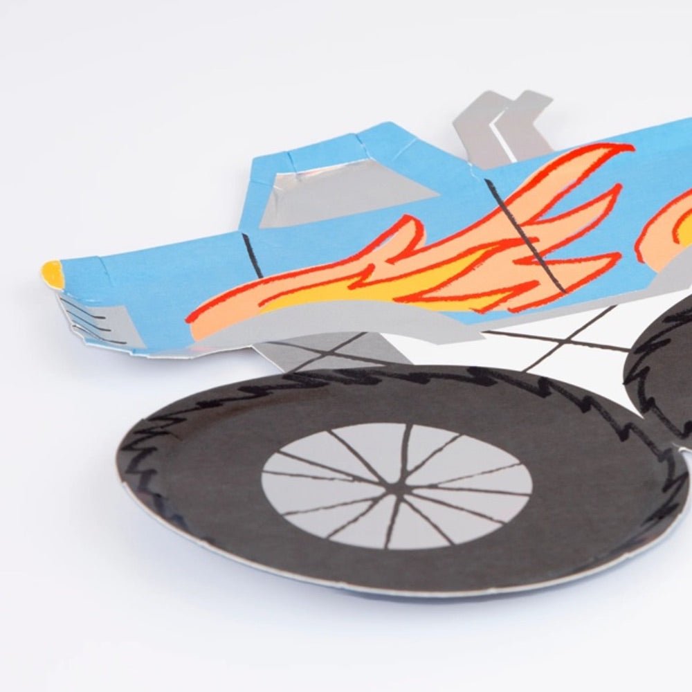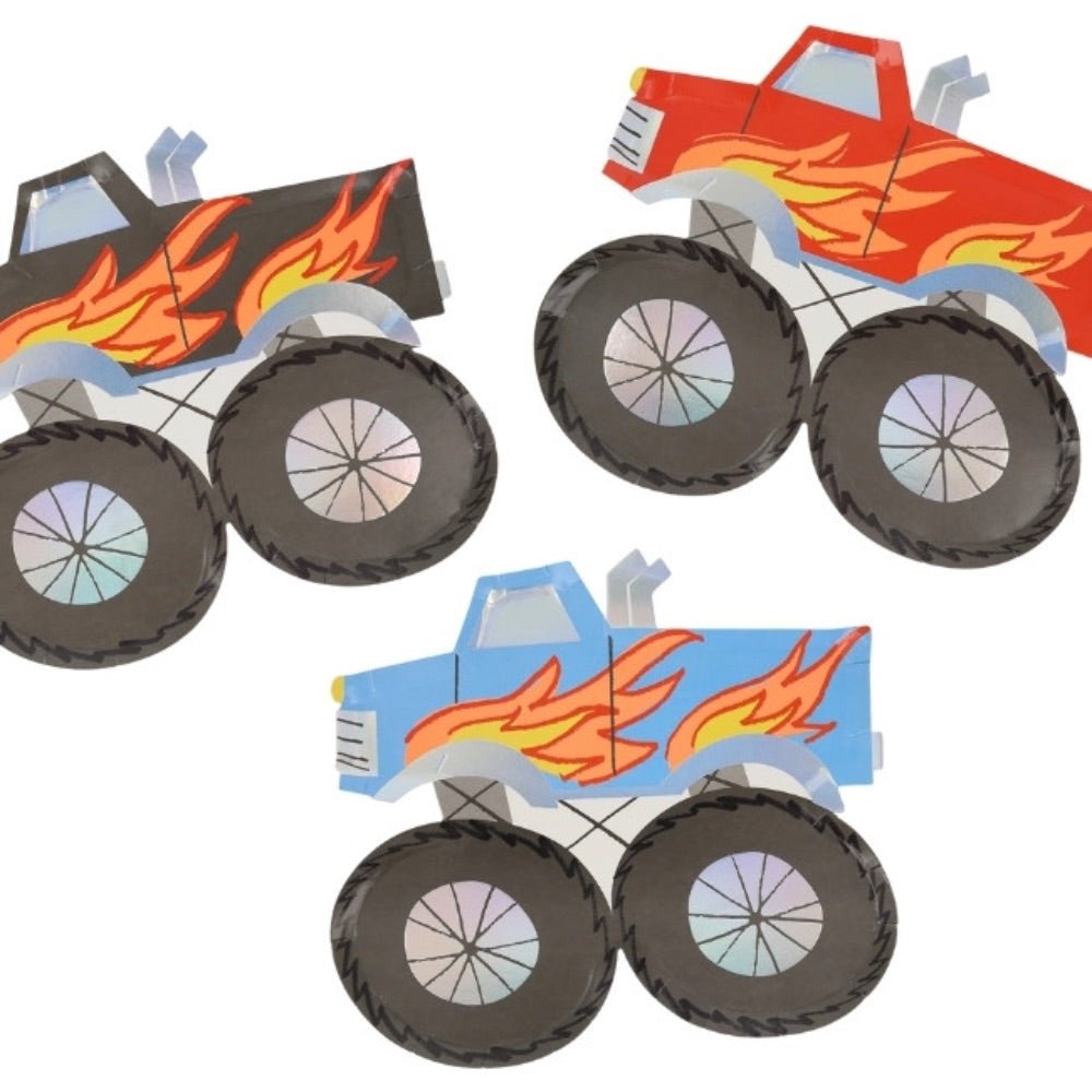 Brumm, brumm! The monster trucks are revving and raring to go! Add a blast of colour and fun to any birthday party table with these cool paper plates. They're ideal for a monster truck party, transport party or simply to give an entertaining and retro vibe to any celebration.