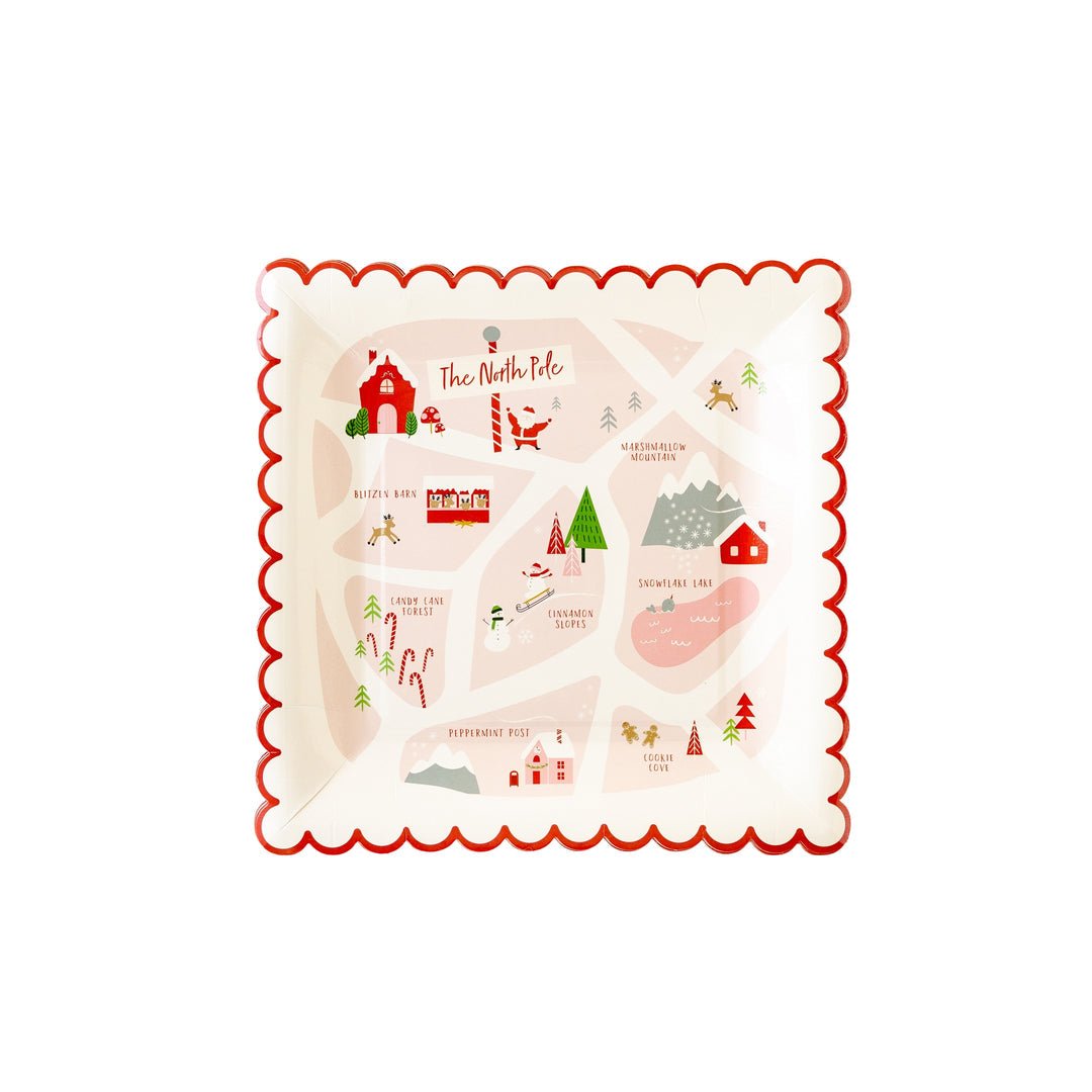 Make sure that your loved ones don't get lost on their way to the Christmas goodies with these North Pole Map plates. Featuring a whimsical map of Santa's home town, these party plates will act as your guest's guide to all of the festive fun at your holiday party. These scalloped edge plates are also the perfect way to spread Christmas cheer to the entire neighborhood when you use them to deliver a plateful of Santa's snacks to your neighbors.