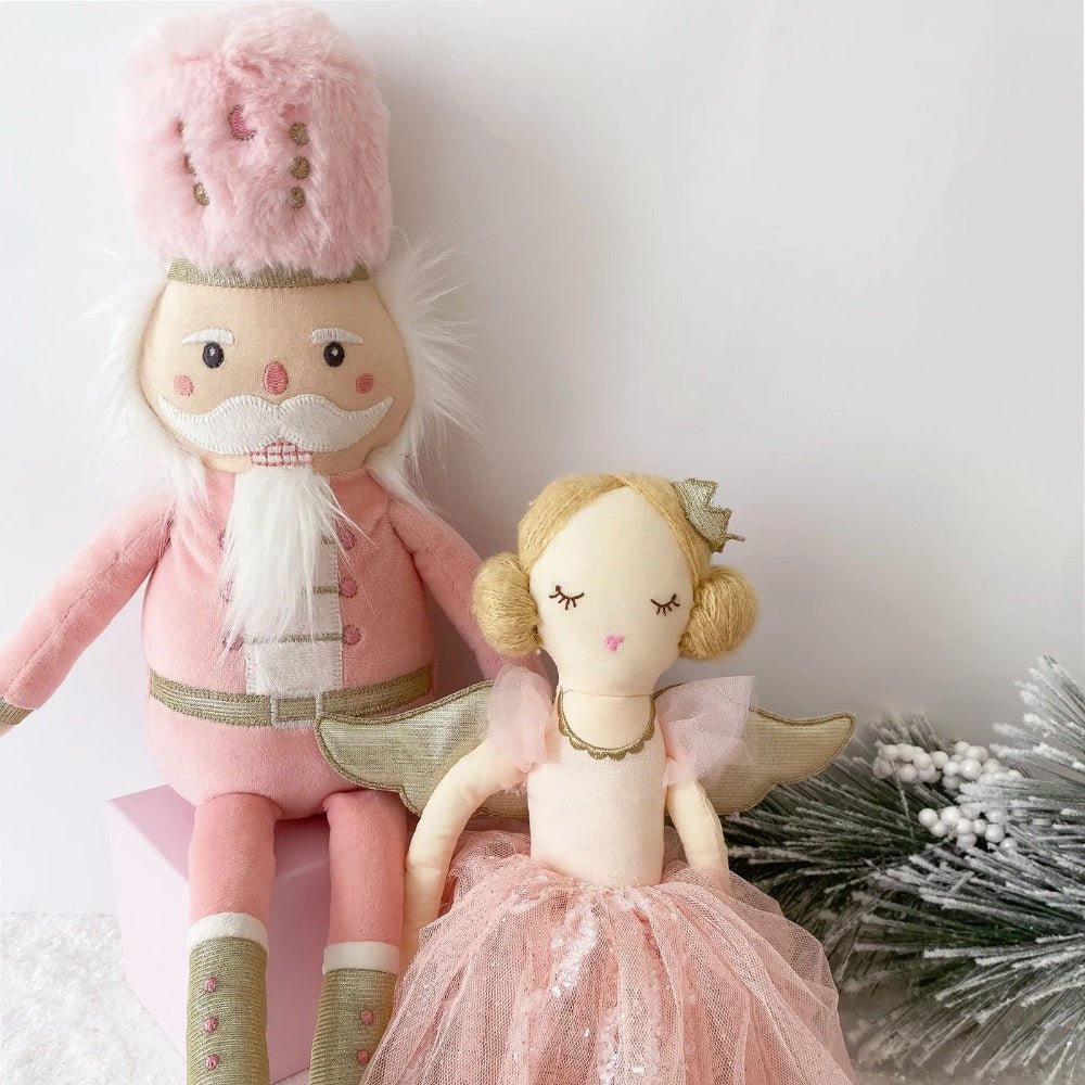 Think pink for a one-of-a-kind Christmas collectible. Mon Ami's Nutcracker Plush Toy is a seasonal scene stealer in his cheery pink uniform paired with a festive gold belt and boots. Foregoing the traditional nutcracker role of cracking nuts, our soft, squeezable Christmas plush toy is all about watching movies and snuggling by the fire. Introduce a little one to the beloved holiday tale by E.T.A. Hoffmann or delight a Nutcracker devotee with this unique Nutcracker plush toy.