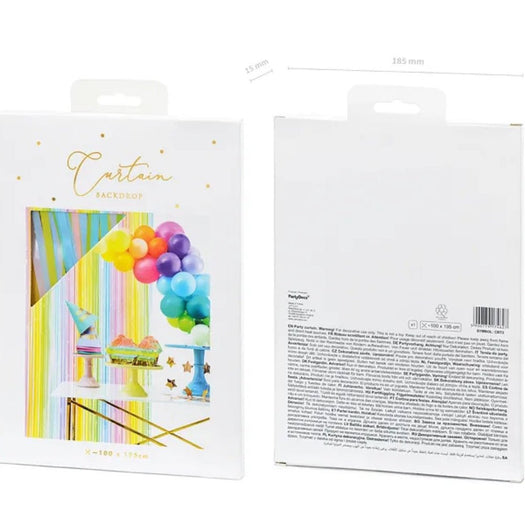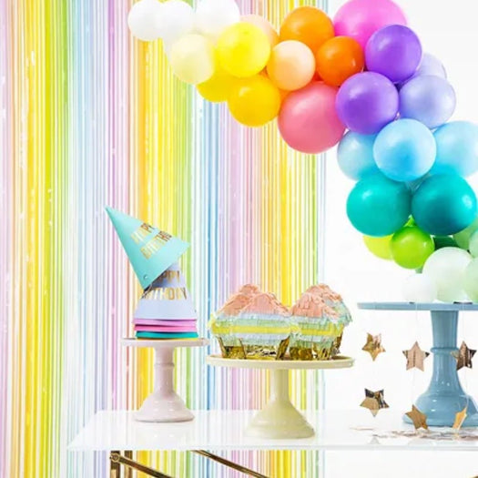 Mix of colours: light green, yellow, orange, light pink, lilac, light blue