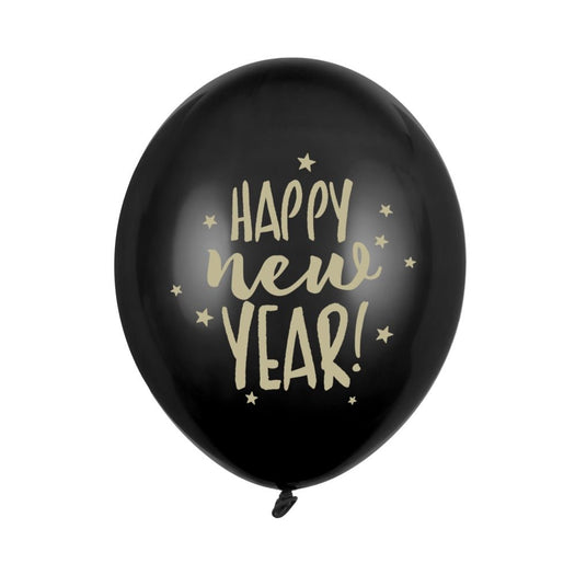 Set of 6 latex balloonsPastel black with gold double-sided Happy New Year print