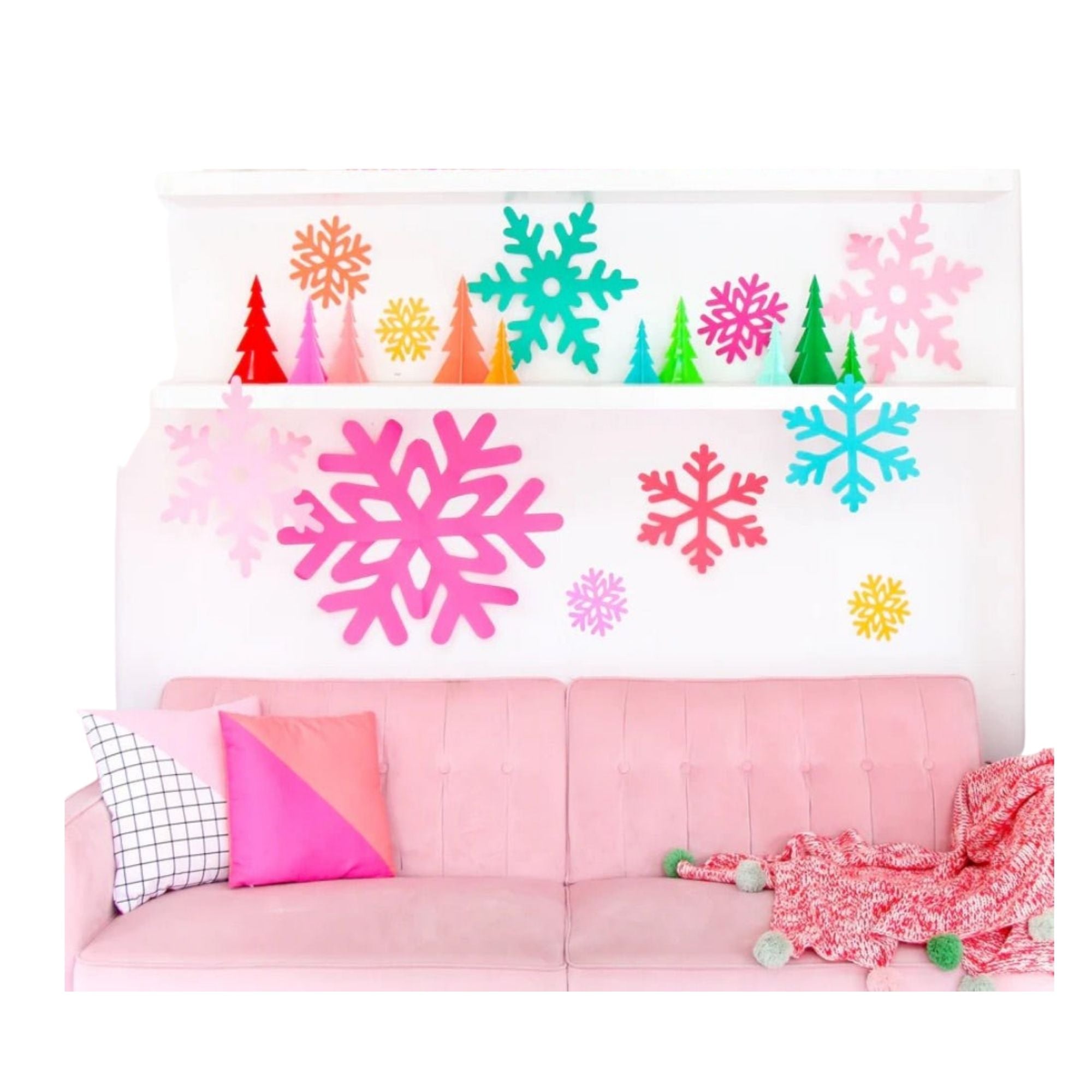 Get festive, bright and merry with these colorful snowflake decorations.Perfect for above a mantel or on your wall, or even hanging from the ceiling.
