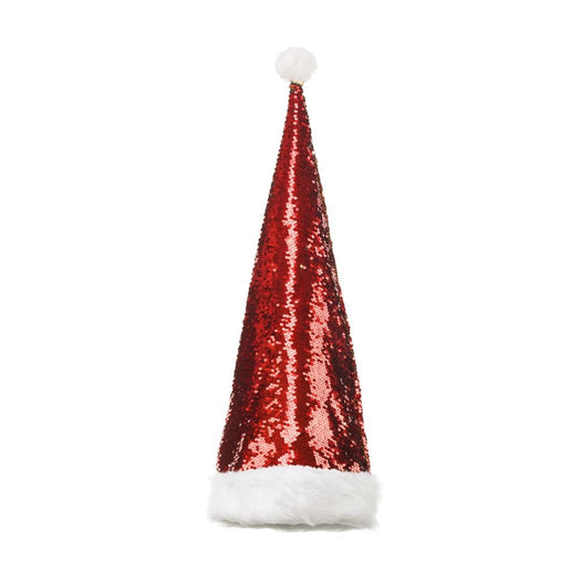 Santa's hat with sequins, mix of colours, length approx. 70 cm. The cap is adjustable, the diameter of the hole for head approx. 10 - 30 cm.