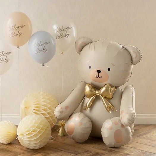 This adorable cream-colored sitting bear balloon brings instant charm to your celebration! The balloon features a delightful bear design that's perfect for birthday parties, baby showers, new baby arrival or festive gatherings. Its soft, neutral cream tone complements any party theme beautifully.