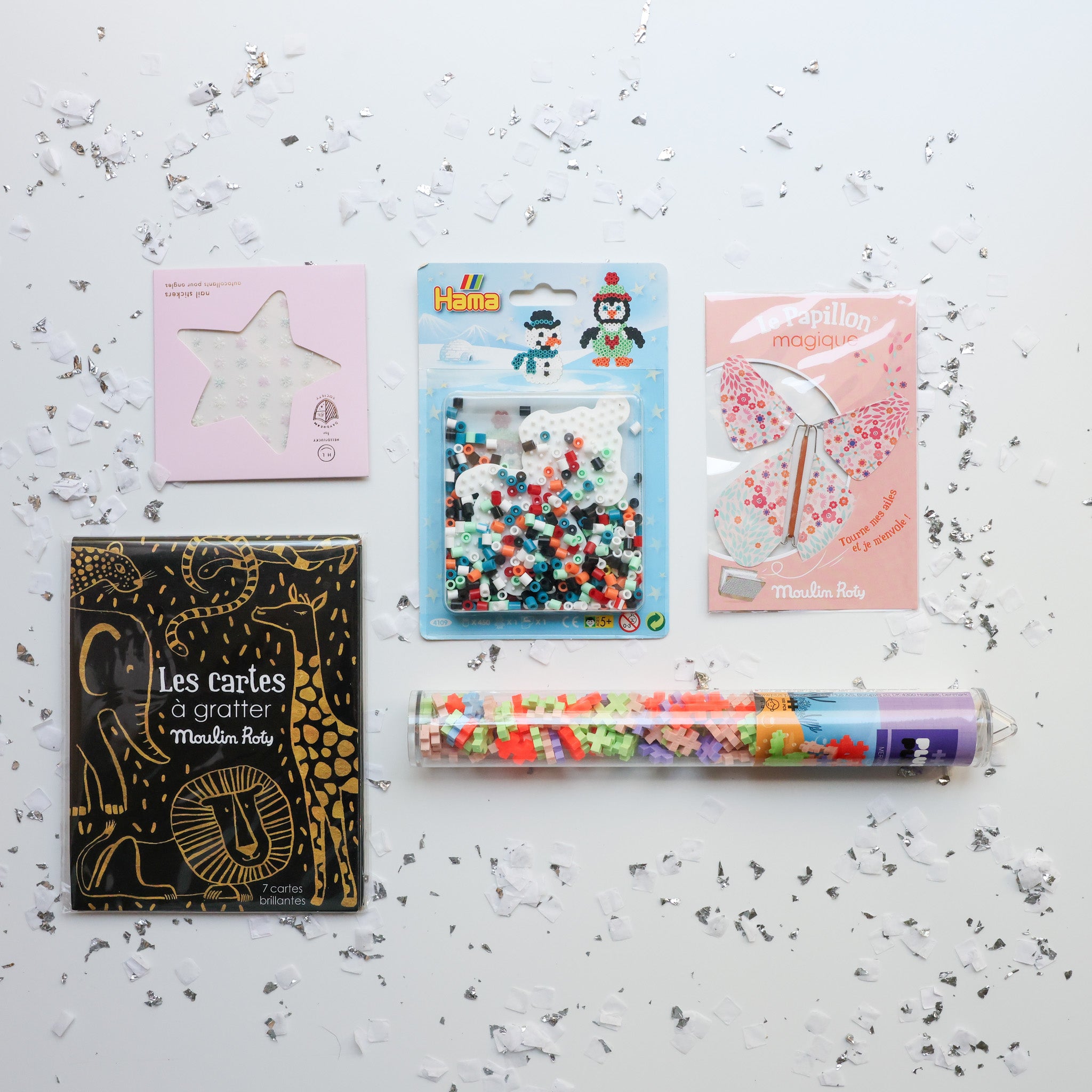 Spark creativity with this delightful stocking bundle packed with crafting fun! Inside you'll find colorful Hama beads for designing custom creations, Plus Plus building blocks ideal for on-the-go play, scratch cards to reveal hidden artwork, whimsical flying butterflies, and trendy nail stickers. Perfect for girls who love hands-on activities, this mix of crafts and toys keeps little creators entertained for hours—whether at home or traveling. An ideal stocking filler that combines imagination, play, and wearable fun all in one festive package.